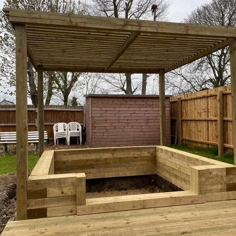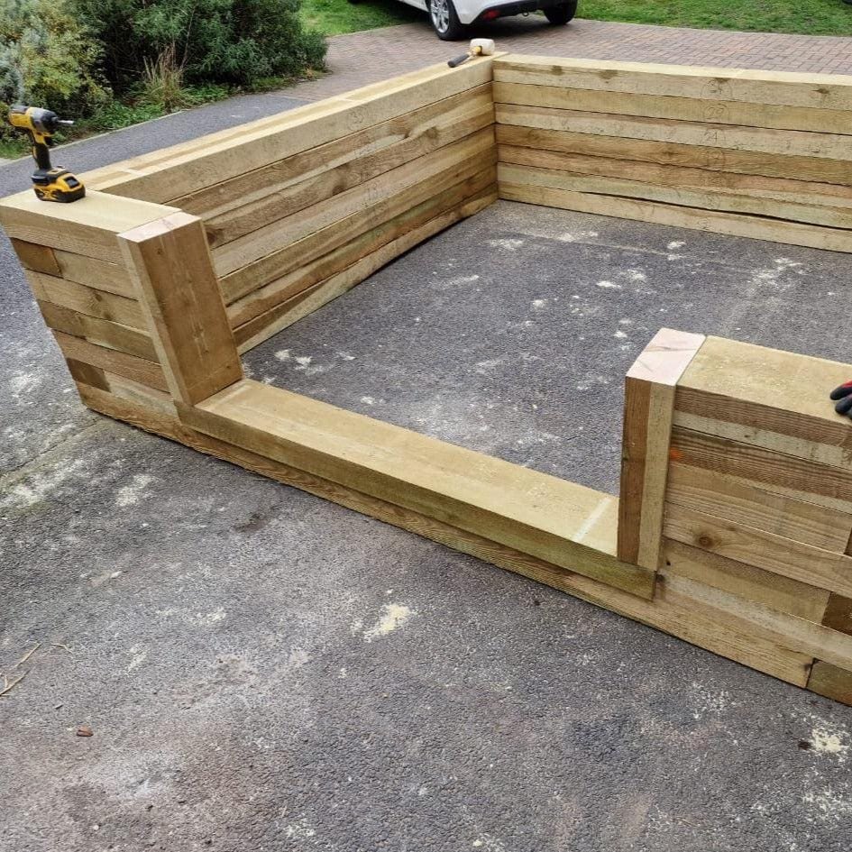 The pond structure consists of very substantial timber sleepers, sleepers are 200mm x 100mm (walls built with sleepers on 200mm side for a 200mm thick wall) and heat treated with tanalith e creating a very strong and long-lasting product, held together using 8mm hex head screws, an impact driver is required to construct.