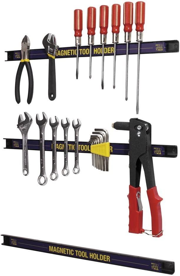 Keep your garage, workshop or shed organised with this triple pack of magnetic tool holders. The sturdy magnetic strips are easily secured to a wall with the screws provided. Each strip measures 18” in length and can be placed horizontally in one line, or spaced vertically on top of each other.